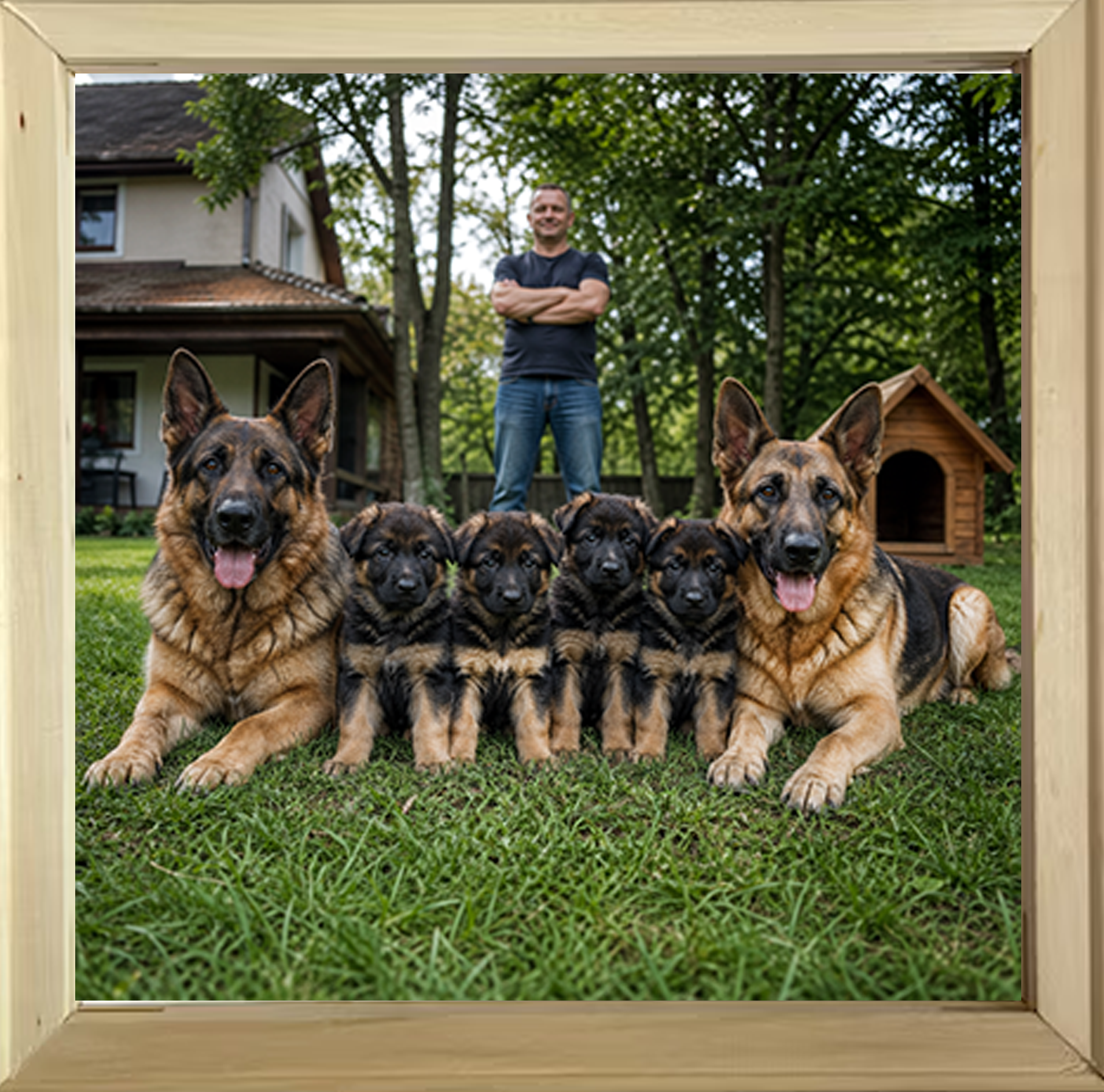 Családi fotó a kutyaház falán,